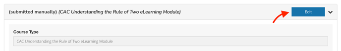 - Then, from the "Biathlon Canada - CAC Understanding the Rule of Two eLearning Module" dashboard, under Configuration > Education Management here, click EDIT on the "CAC Understanding the Rule of Two eLearning Module" section: