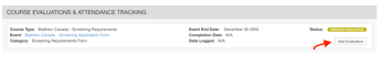- Click 'add evaluation' from the COURSE EVALUATIONS section.