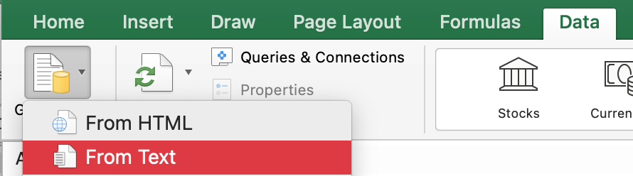 OR Data > Get Data (Power Query) > From text on the newest versions of Excel