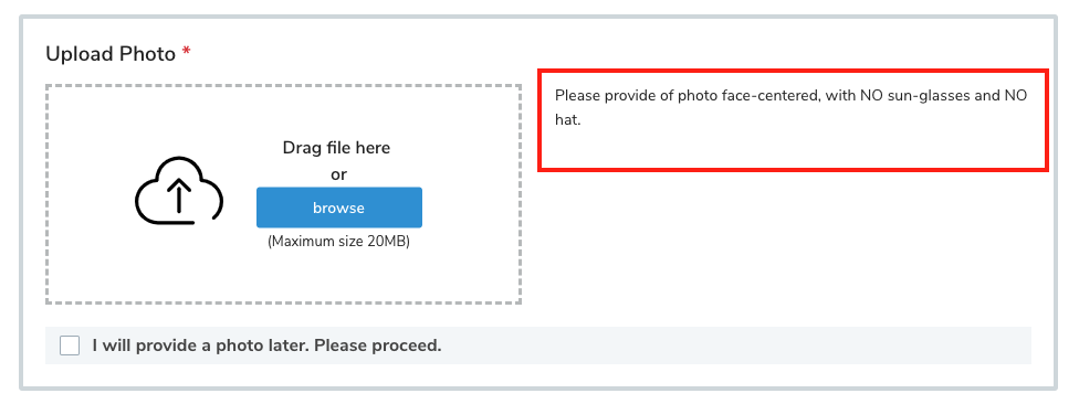 You can add specific requirement information regarding the photo, that will display on the screen.