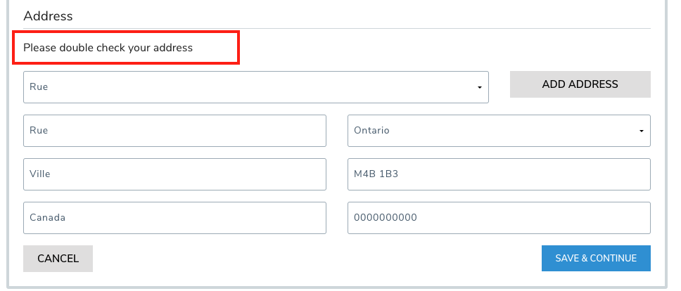 Eg- you need to be a resident of the province X / no PO mailbox / ect...