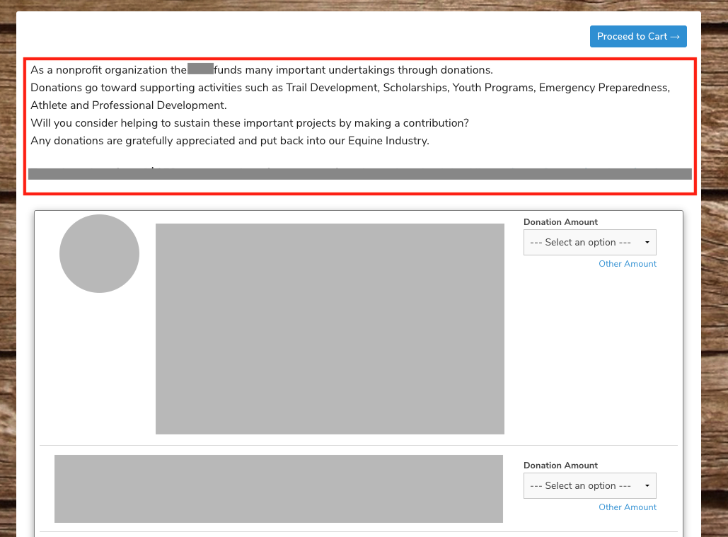 Any additional content information you want to give people about your store will show up at the very top of the store display, as below: