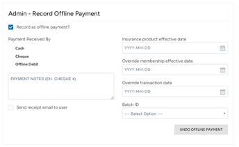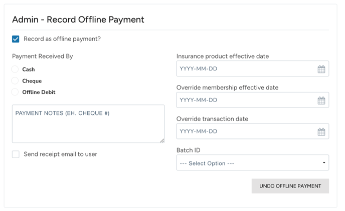 - Scroll down to the Record Offline Payment section, and enter the payment details specific to the club.