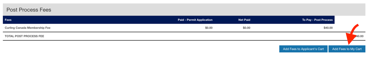 If a club did not pay their members' Curling Canada individual membership fees during their initial application, these fees must be submitted as a post-process payment. Follow the steps below to complete the payment process: