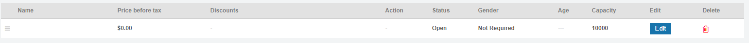 Category Capacity: The individual category capacity. If your Event / Club capacity is less than what you specify here the Event / Club capacity takes effect.