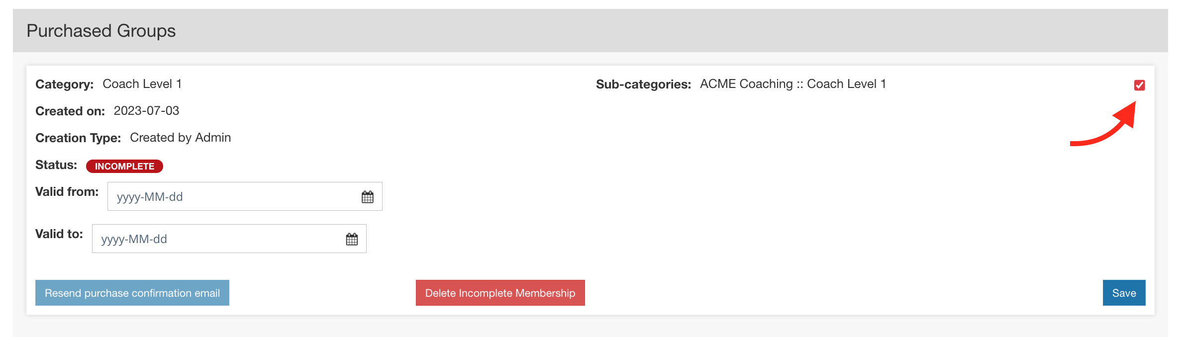 - Once a new membership is created you will automatically be forwarded to the Membership Details page for the license/membership you just created.