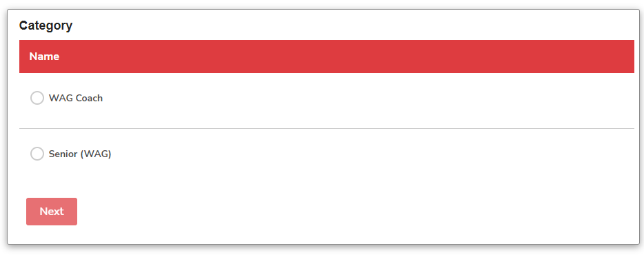3. Select the registration category you need to register the person for- ie: