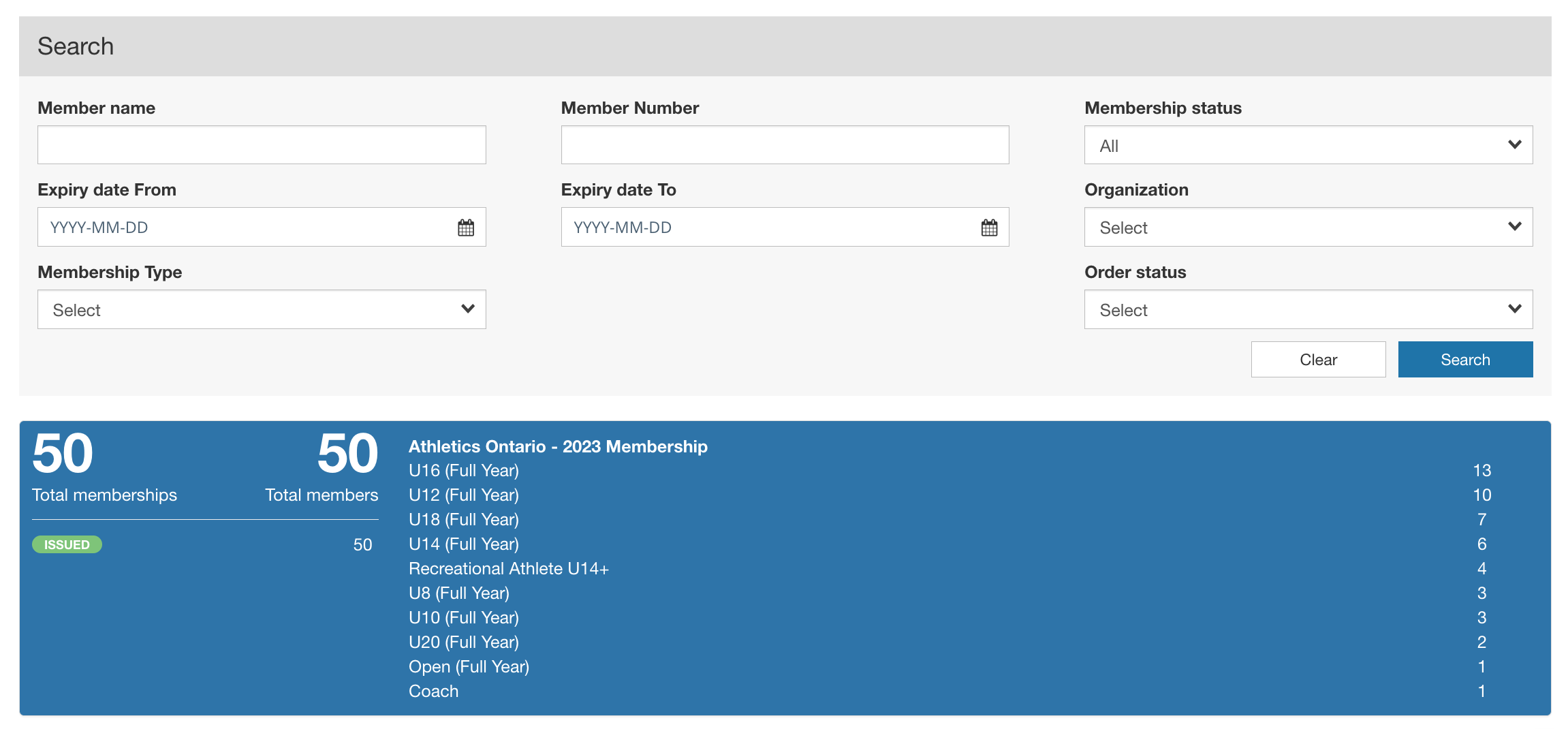 From there, you can access your list of member's membership information: