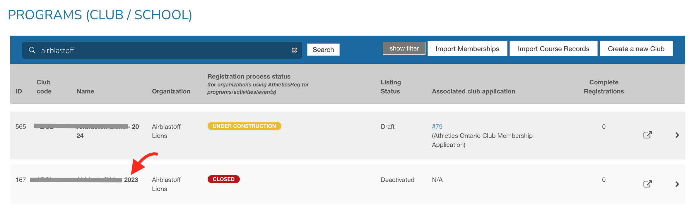 From your CLUB MENU HERE, click on the 2023 version of your club dashboard: