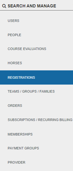 1. Click the "Registrations" tab under "Search and Manage" You may enter search criteria to find a specific registration (by F Name, L Name, or email) or you can leave the search field blank to pull up all registrations.