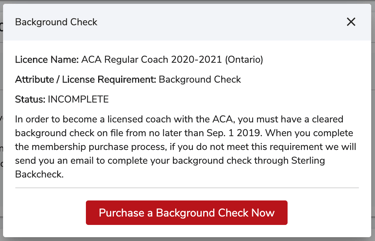 If the member does not have a background check on file, they will see a "Incomplete" status for that requirement, and will be presented with a section similar to below.