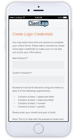 The candidate will be presented with a Credential Creation page.