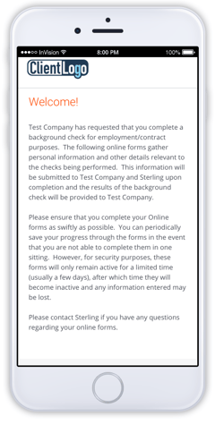 The candidate will be presented with a Welcome page, providing them with some information on their background check process.