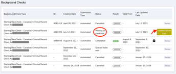 - If you have any pending (waiting on candidate) request, simply click the 'complete consent form' button to access the Sterling Site and finalize your request by following the steps HERE.