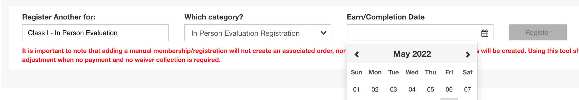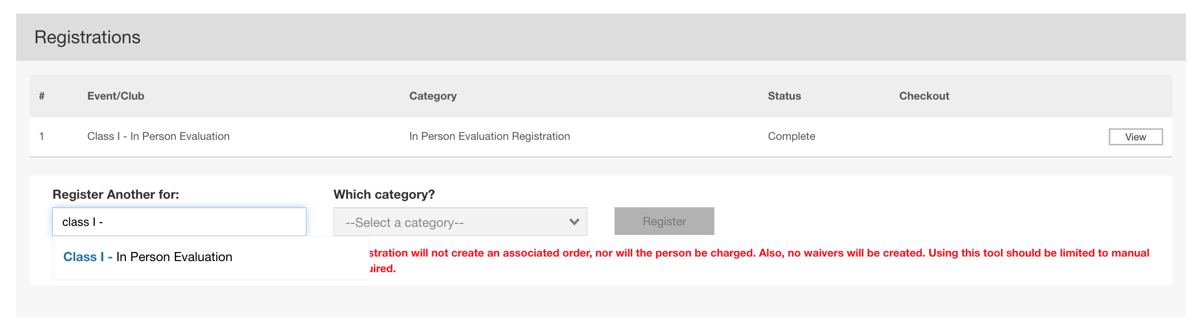 3- In the 'register NAME for:' search field, search for the name of the event linked to your course type: