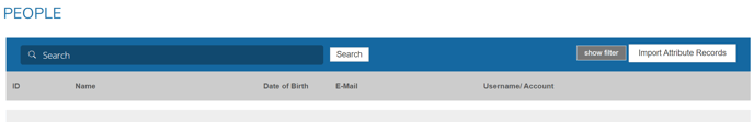 Access to the bulk import is found in the PEOPLE section where you'll find the import button at the far right in the blue header.