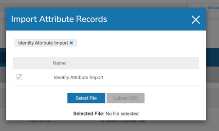 Tick the box for Identity Attribute Import, select your file, and upload the CSV.