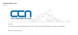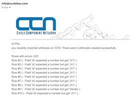 You'll be emailed a summary of your import. The email will come from info@ccnbikes.com