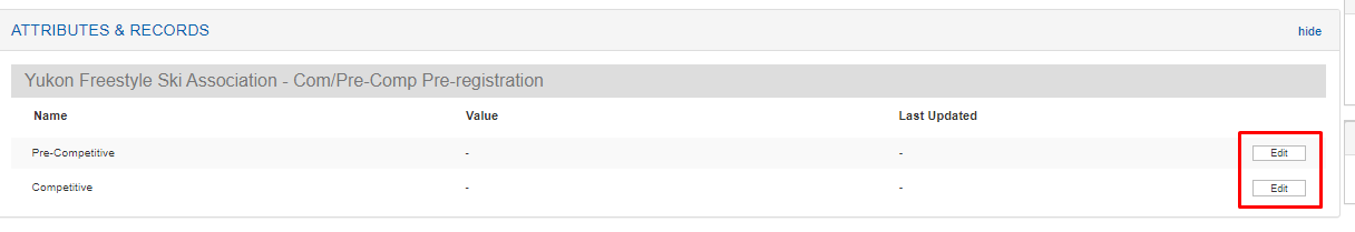 2. After reviewing the registration details, if you want to go ahead and approve the person click on edit on either pre-competitive or competitive: