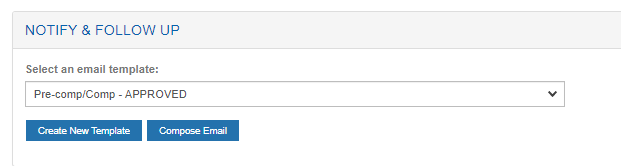 4. To notify the person that they have been approved and to send them the link to fully register use the email template called Pre-comp-Comp - APROVED template under ''notify and follow-up'':