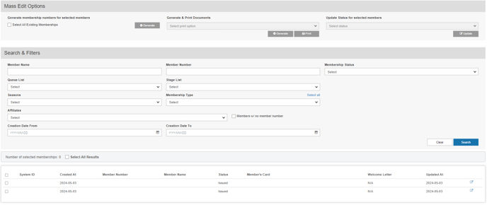1. From your Membership Organization dashboard, click on Mass Edit & Printing