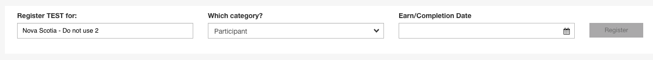 3- To register a participant, select the "Register NAME for:" option and search for the event name (you must have admin access to the event). Choose the event and category name. If the event requires an evaluation or attendance tracking, the system will prompt you for any additional information needed.