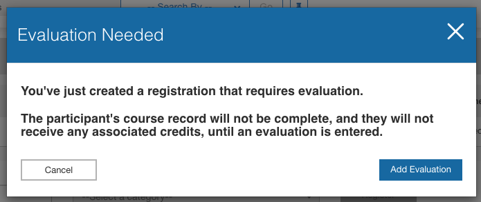 After saving the new registration, you can proceed with the standard procedure to finish the evaluation or track attendance, if required.