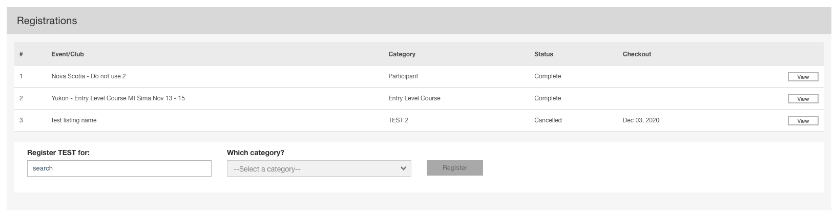 2- Access the participant's profile and navigate to the Registrations section by scrolling down.