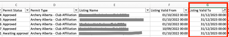 Access your list of applications (Excel format)