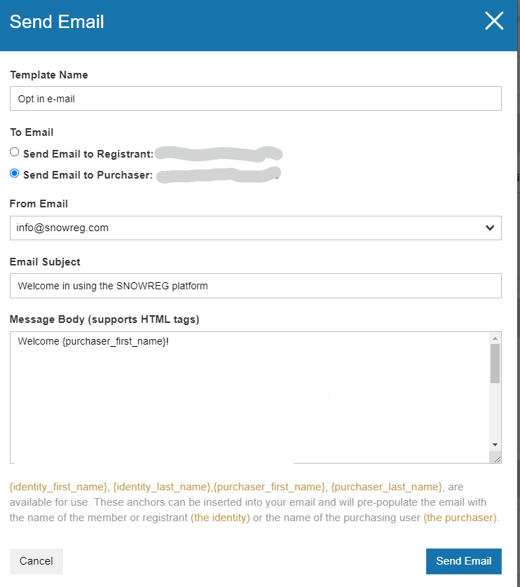 After selecting a template, click on "compose email" to complete the email. This action will prompt a pop-up window for sending the email.