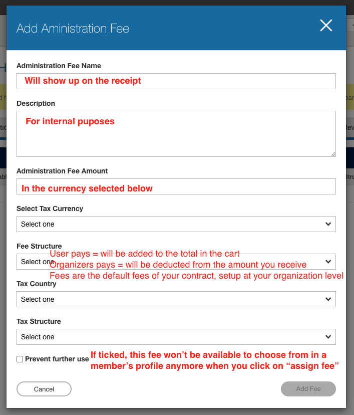 - Once all details are entered, save the fee. It will now be available in your list of fees.