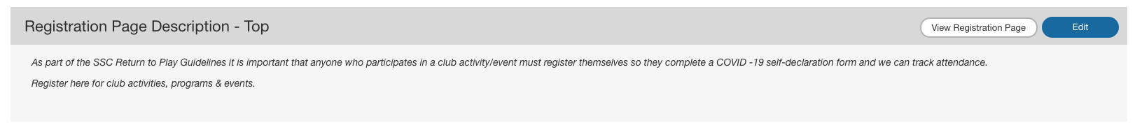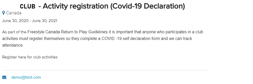 Your club/ptso organization has been given a new "CLUB/PTSO NAME - Activity registration (Covid-19 Declaration)" event for you to manage your members' COVID-19 registrations.