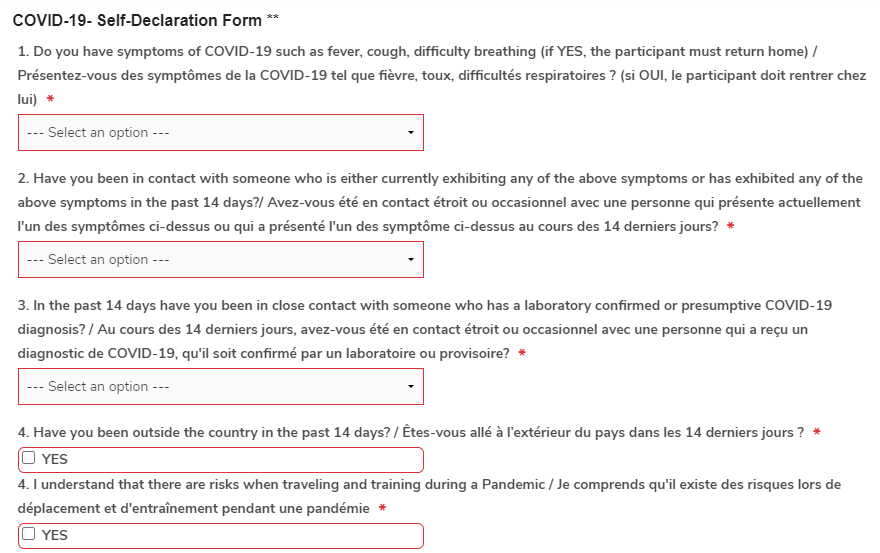 We've added a registration rule that is forcing your member to complete the COVID-19 - Self-Declaration Form as they confirm their registration to your activity.