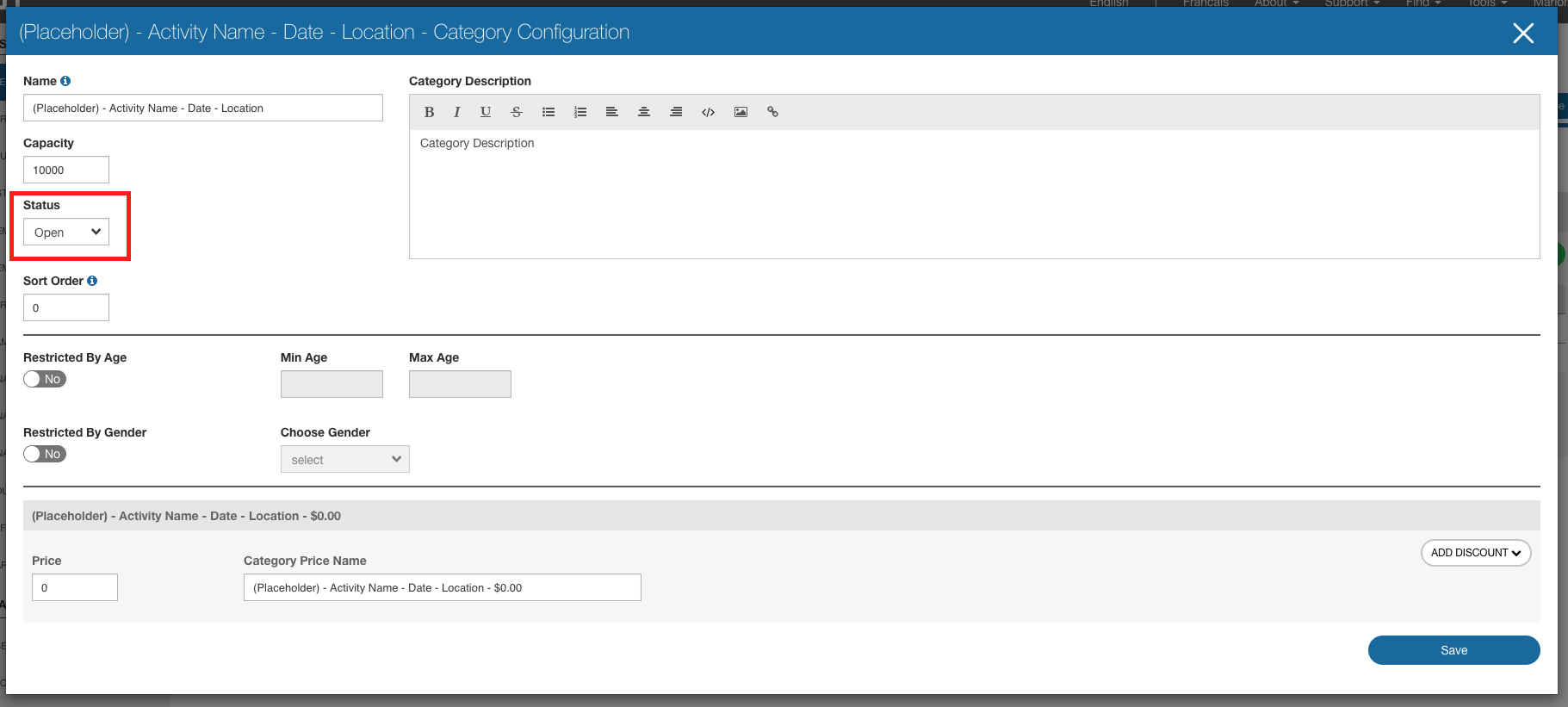 For each new activity that your club will be offering, you need to create a new registration category as follow: