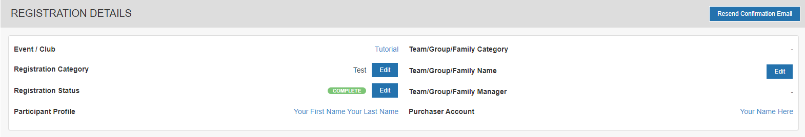 3. Select the registration to enter the details page, within the registration details page, in the right-hand pane at the bottom, there is an option to Resend Confirmation E-Mail.