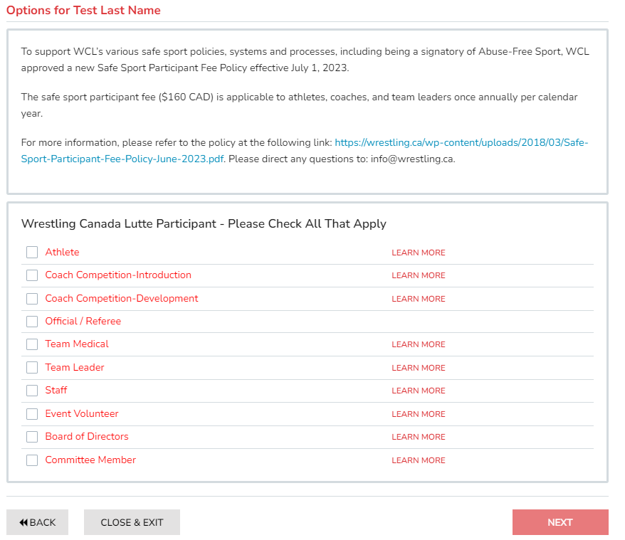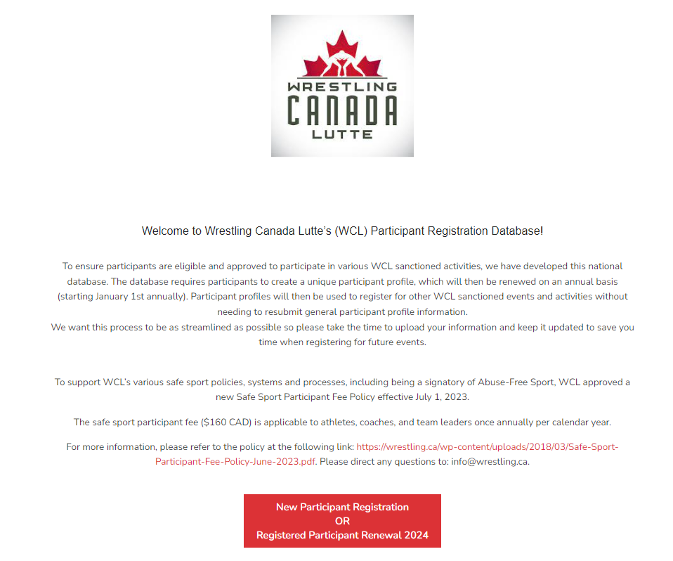 1. Use the 2024 Wrestling Canada registration link & click on the red registration button