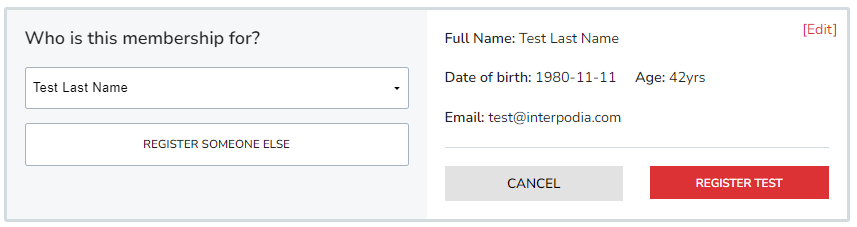 If you want to register someone other than yourself (for example, your children), simply click on "Register someone else" and enter their information.