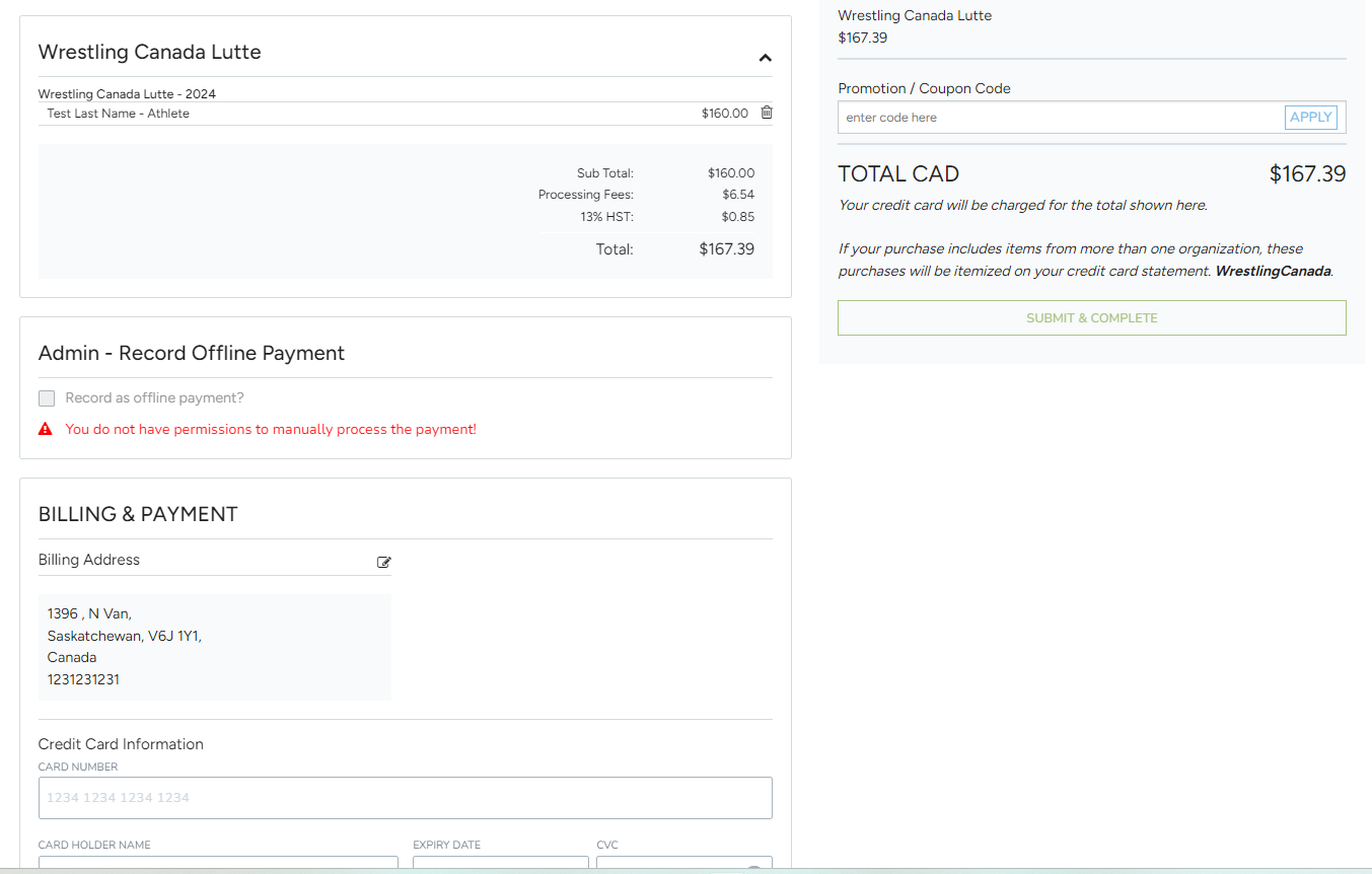 8.You are now at the final step of the registration. If all the information is correct, simply enter your payment details, then click "Submit and Complete"