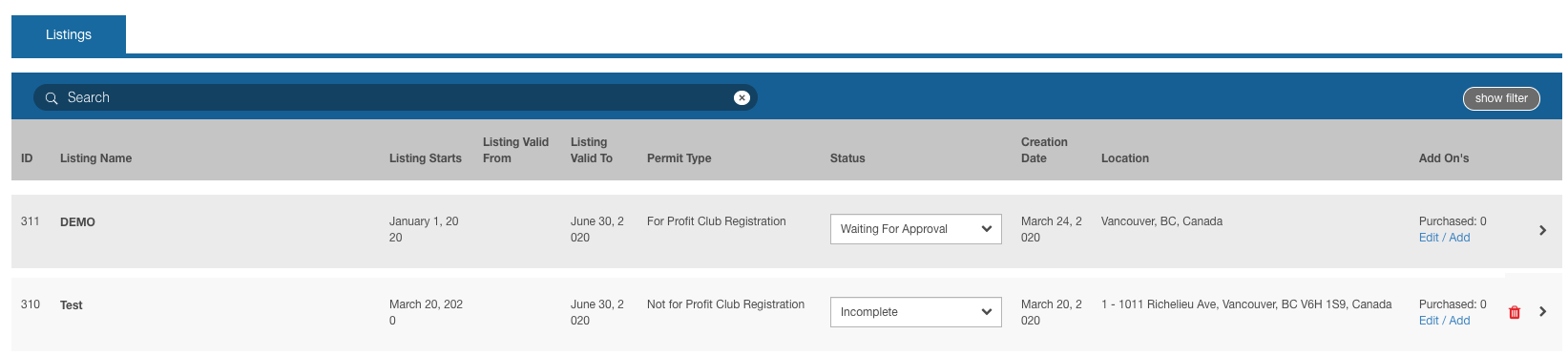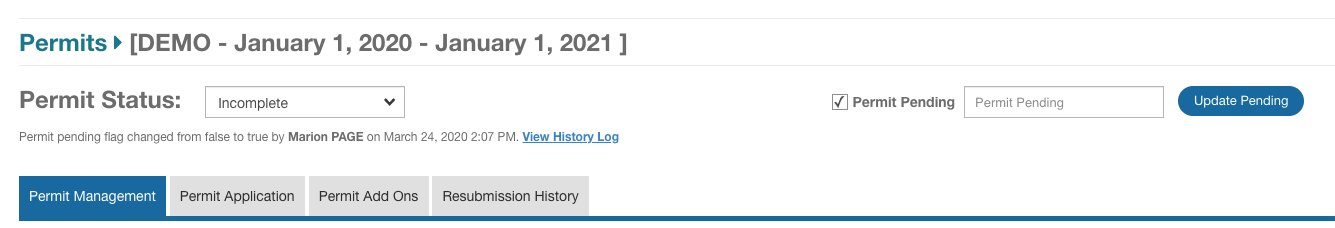 From there, you have access to the permit status, you also have the option to add a permit/application pending status with explanatory notes.