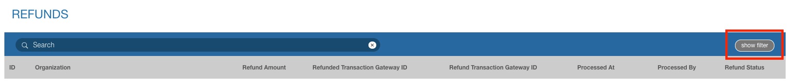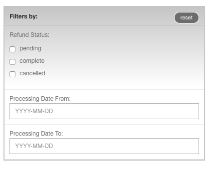 - Select the "refunds" tab on the administrative dashboard which will list chronologically all the refunds processed for your organization.