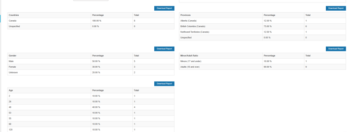 This page will allow you to visualize the breakdown of your memberships and download complete reports for each members with the complete information about those members.