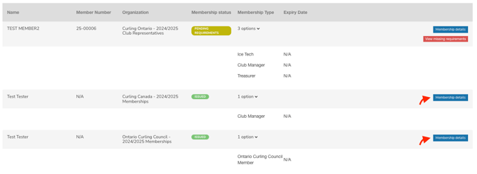 After accessing your list of affiliated members, simply scroll down to the membership list and click on the blue Membership details button to access more information.