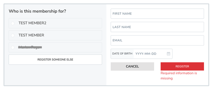 - Choose the profile to register, or select REGISTER SOMEONE ELSE for adding additional family member.