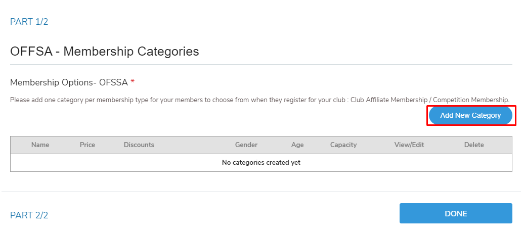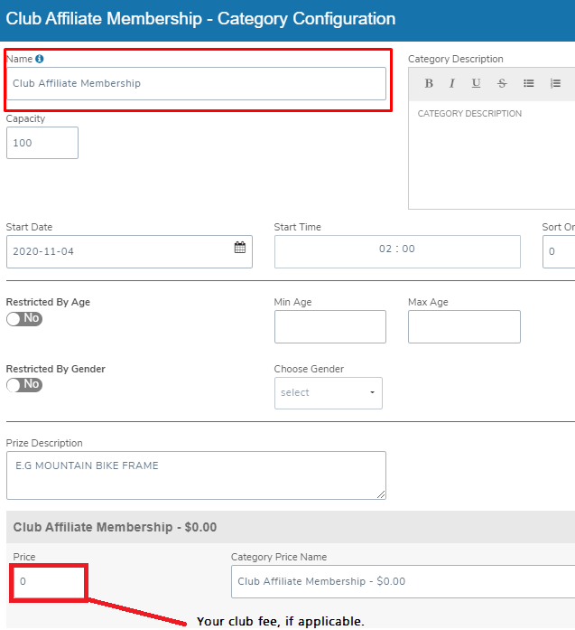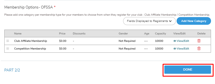 Both categories will prompt the purchase of the appropriate membership so that your members can directly register from your club page.