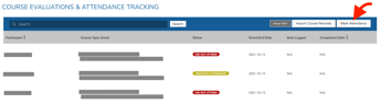 From the COURSE EVALUATIONS & ATTENDANCE TRACKING menu, click the 'Mark Attendance' button on the top right corner of the screen: