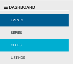 - Search and select your Event or Club from the menu on the left hand side of the page