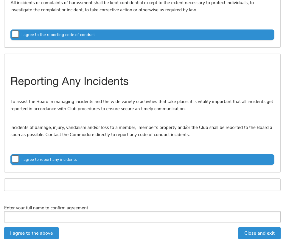7- Go through the waivers - Concussion Agreement and Code of Conduct and Sign Off