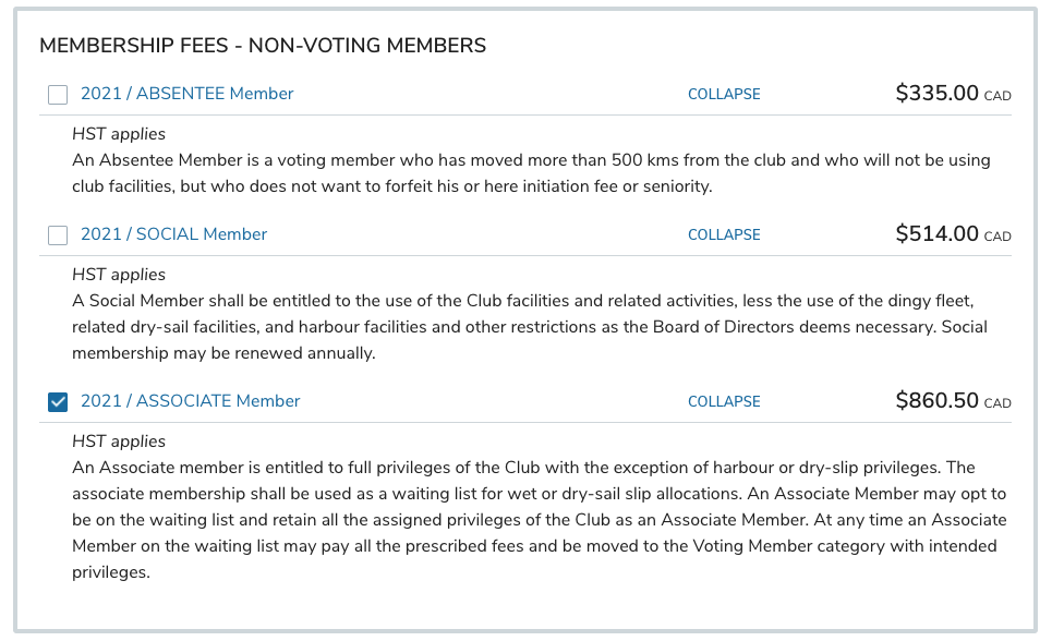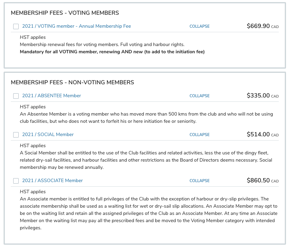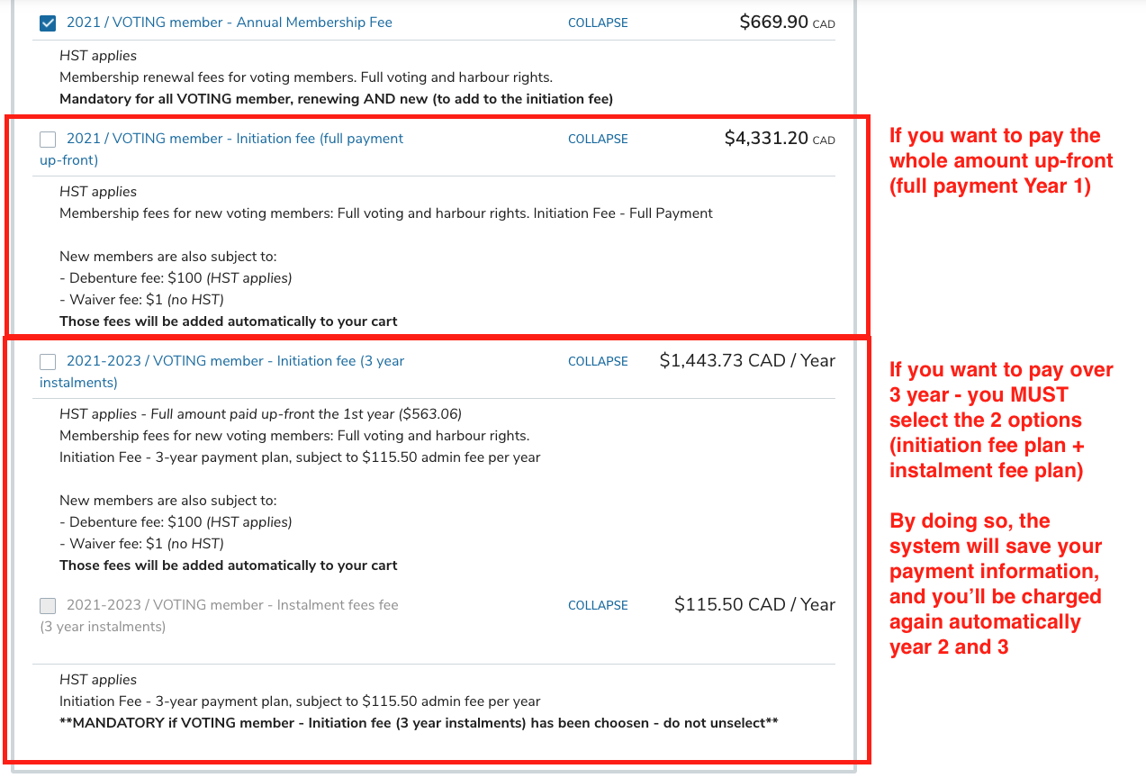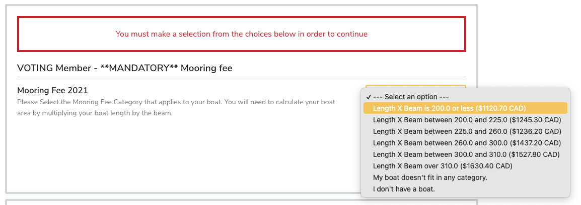 - VOTING members: must select a mooring fee option