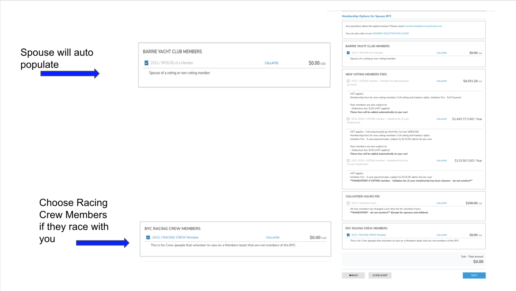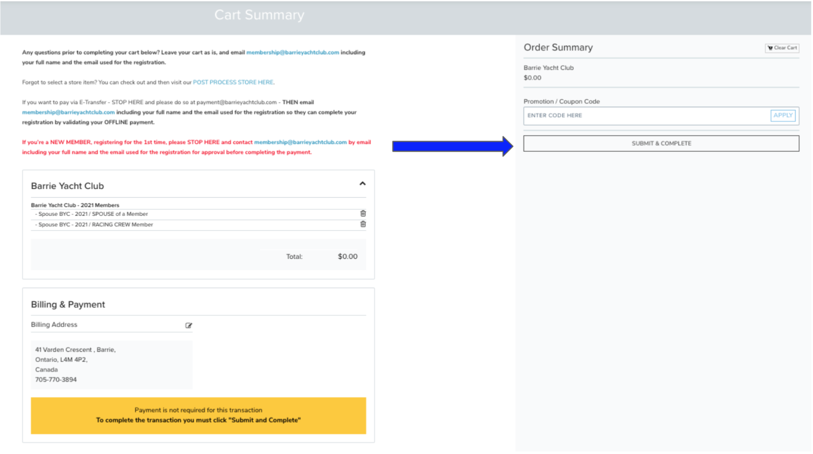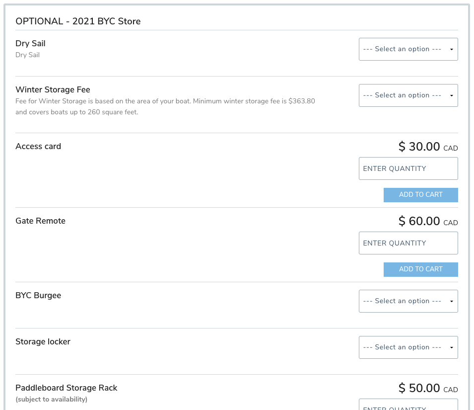 Any questions prior to completing your cart - please email membership@barrieyachtclub.com