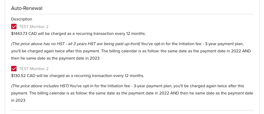 New VOTING member with a 3-year payment plan will also complete their auto-renewal plan from the cart as below: